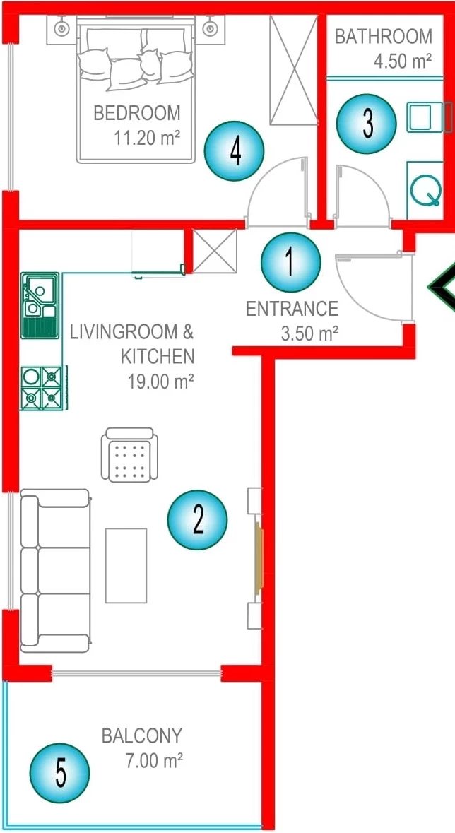 қаласында сатылатын пәтер Аланья. Ауданы, м: 56, нөмірлер: 1+1, бағасы: 209 850 евро. (ID 520)