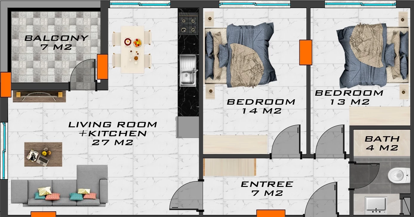 қаласында сатылатын пәтер Аланья. Ауданы, м: 55, нөм...