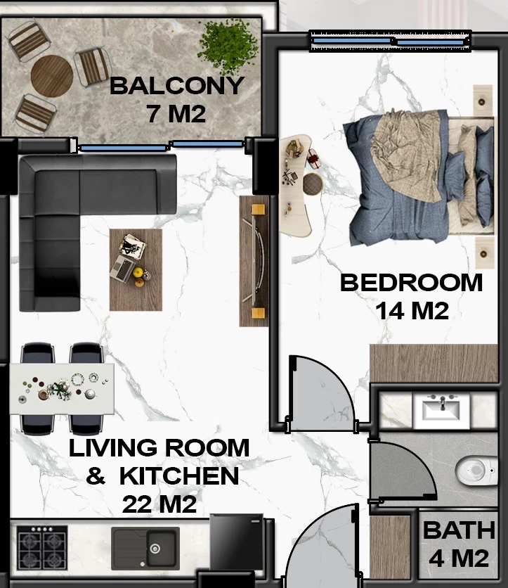 қаласында сатылатын пәтер Аланья. Ауданы, м: 47, нөмірлер: 1+1, бағасы: 140 000 евро. (ID 530)