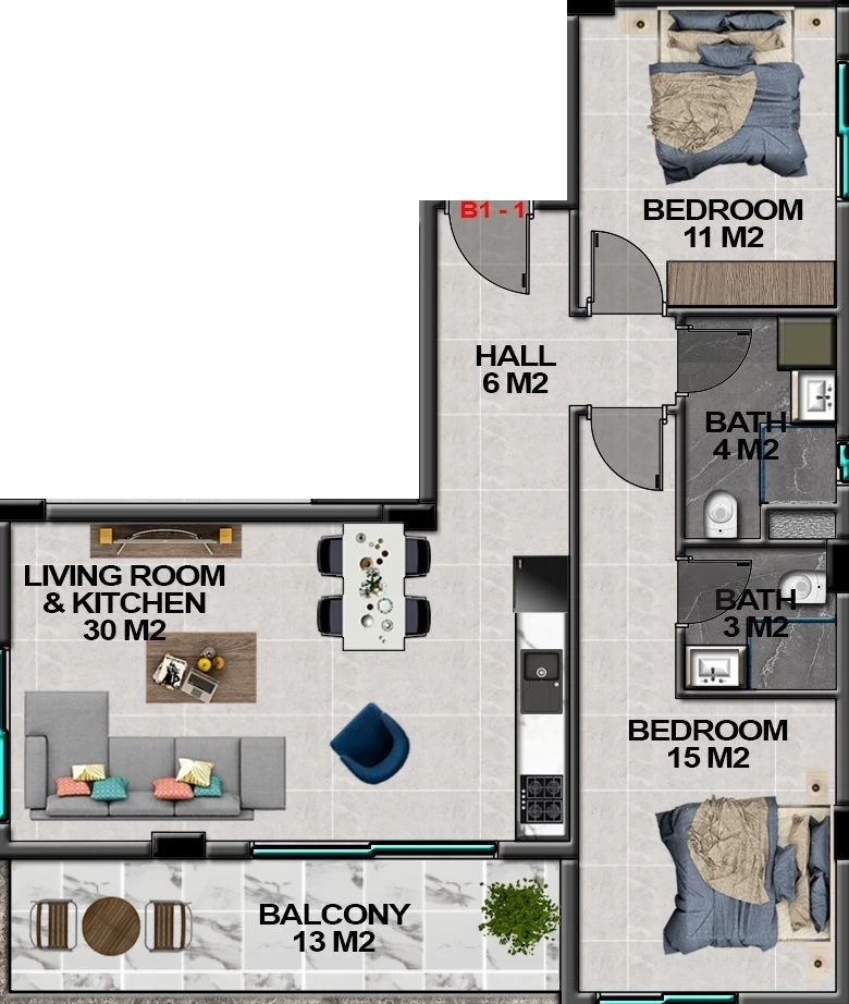 қаласында сатылатын пәтер Кепез. Ауданы, м: 79, нөмі...