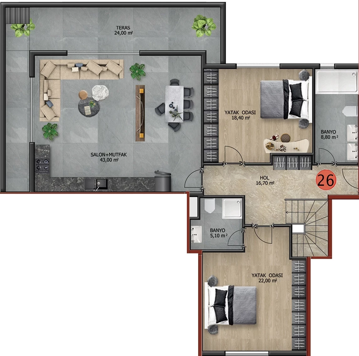 қаласында сатылатын пәтер Мұратпаша. Ауданы, м: 108,...