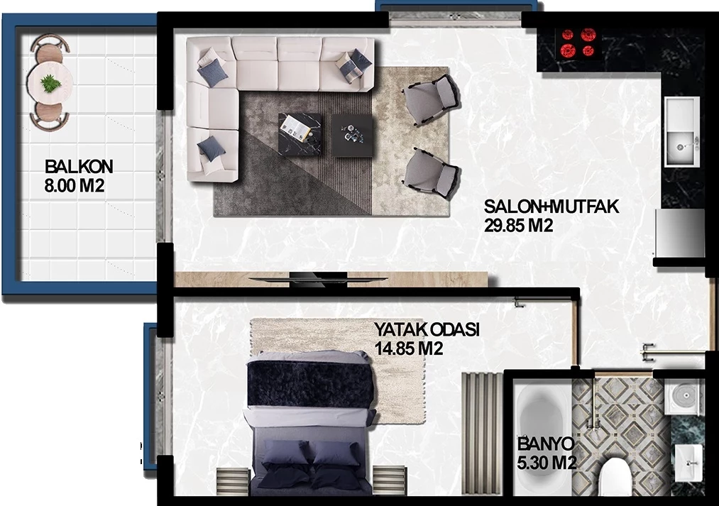 қаласында сатылатын пәтер Аланья. Ауданы, м: 52, нөмірлер: 1+1, бағасы: 126 650 евро. (ID 550)