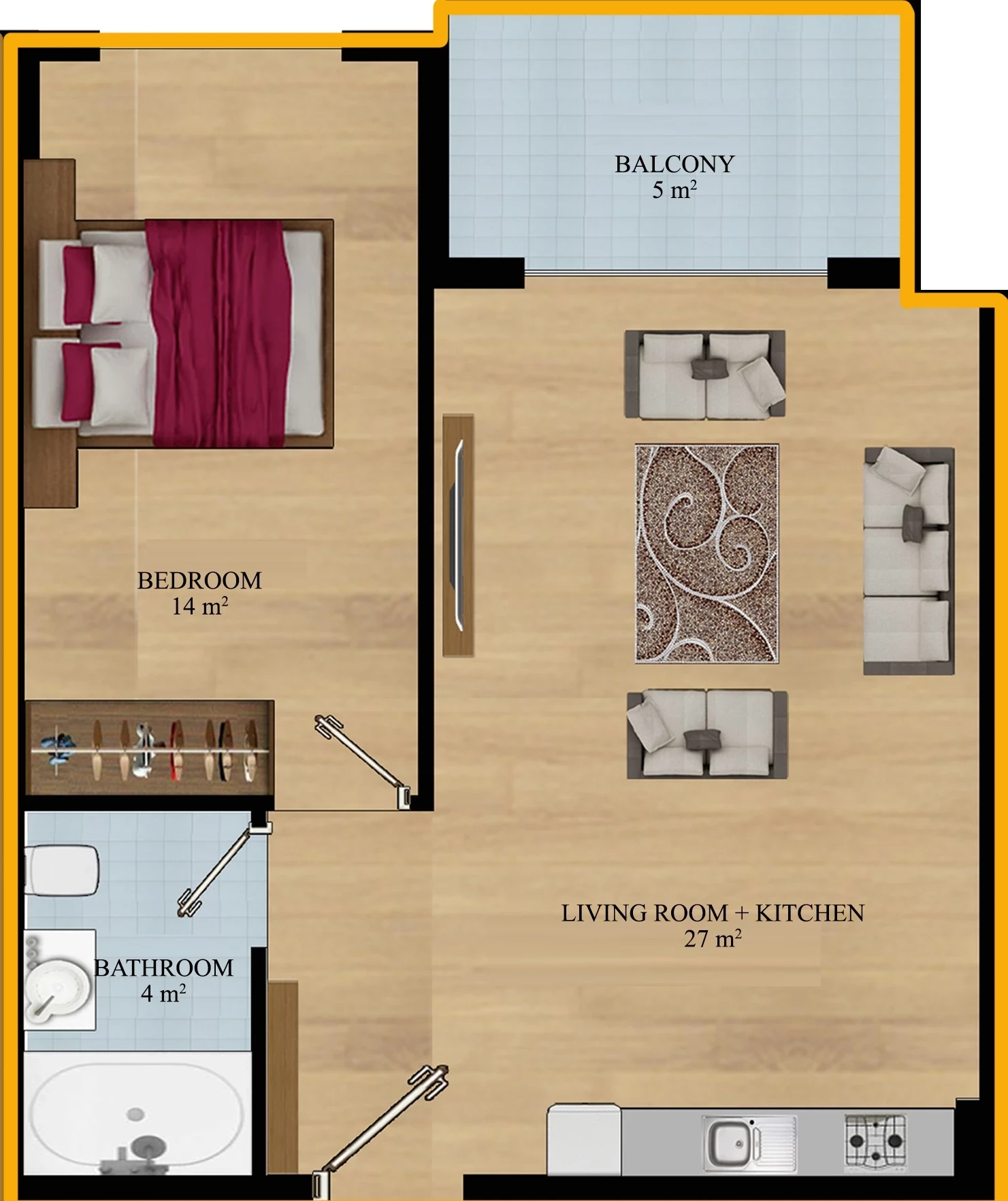 қаласында сатылатын пәтер Аланья. Ауданы, м: 61, нөмірлер: 1+1, бағасы: 109 500 евро. (ID 574)