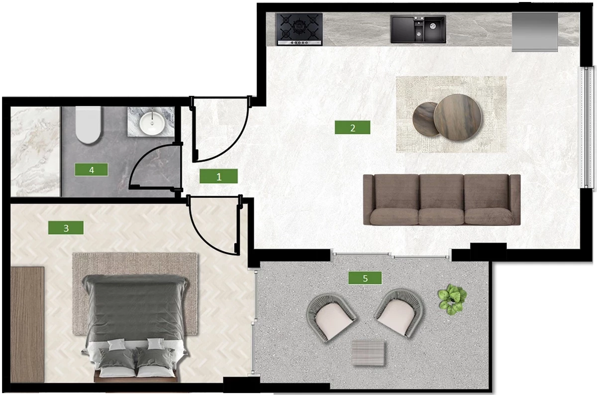 қаласында сатылатын пәтер Аланья. Ауданы, м: 52, нөмірлер: 1+1, бағасы: 185 000 евро. (ID 576)
