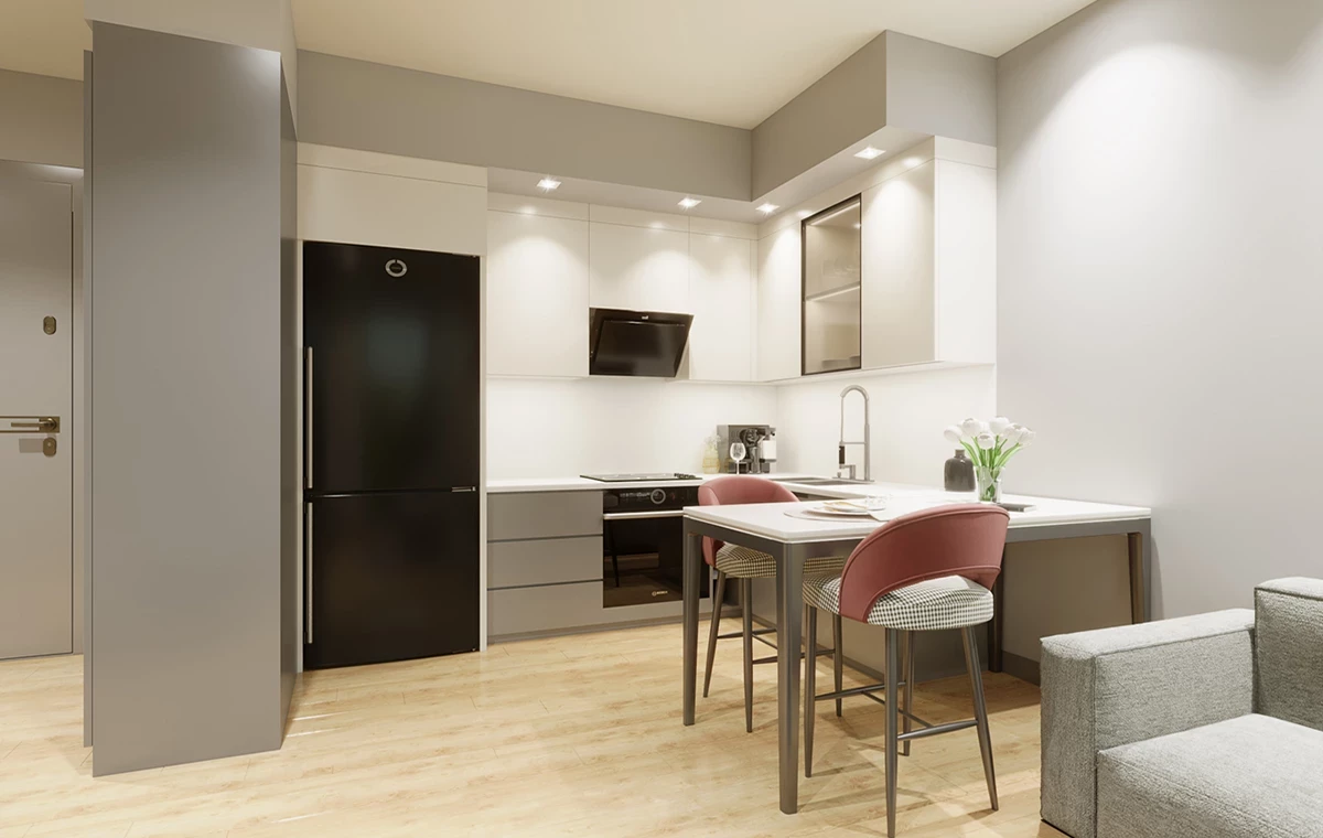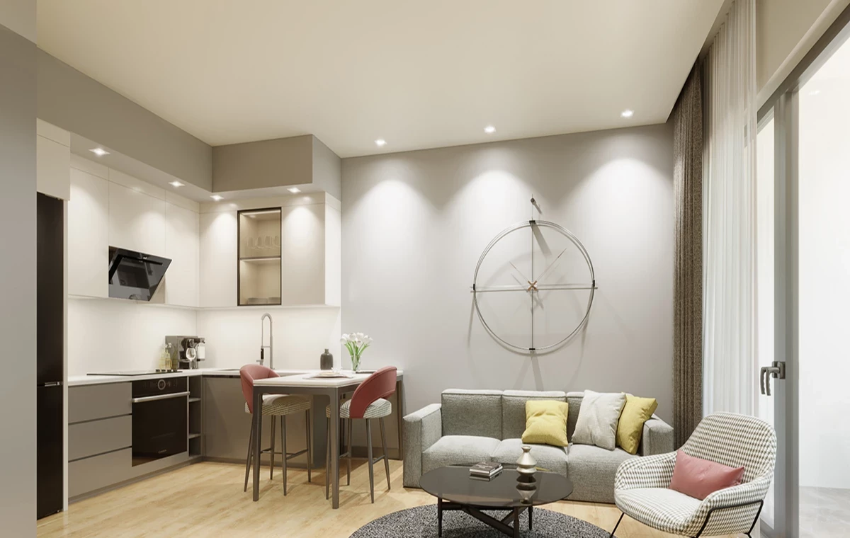 5 кірістірілген жиынтық (пеш, пеш, сорғыш, микротолқынды пеш, ыдыс жуғыш машина), VRF кондиционер жүйесі, Киімге арналған сөре, Бассейн, Камин, Түрік моншасы, сауна, фитнес, Жабық тұрақ (жабық тұрақтағы электр зарядтағыш), 2 лифт, Күзет және бейнебақылау жүйесі, Бейне интерком жүйесі