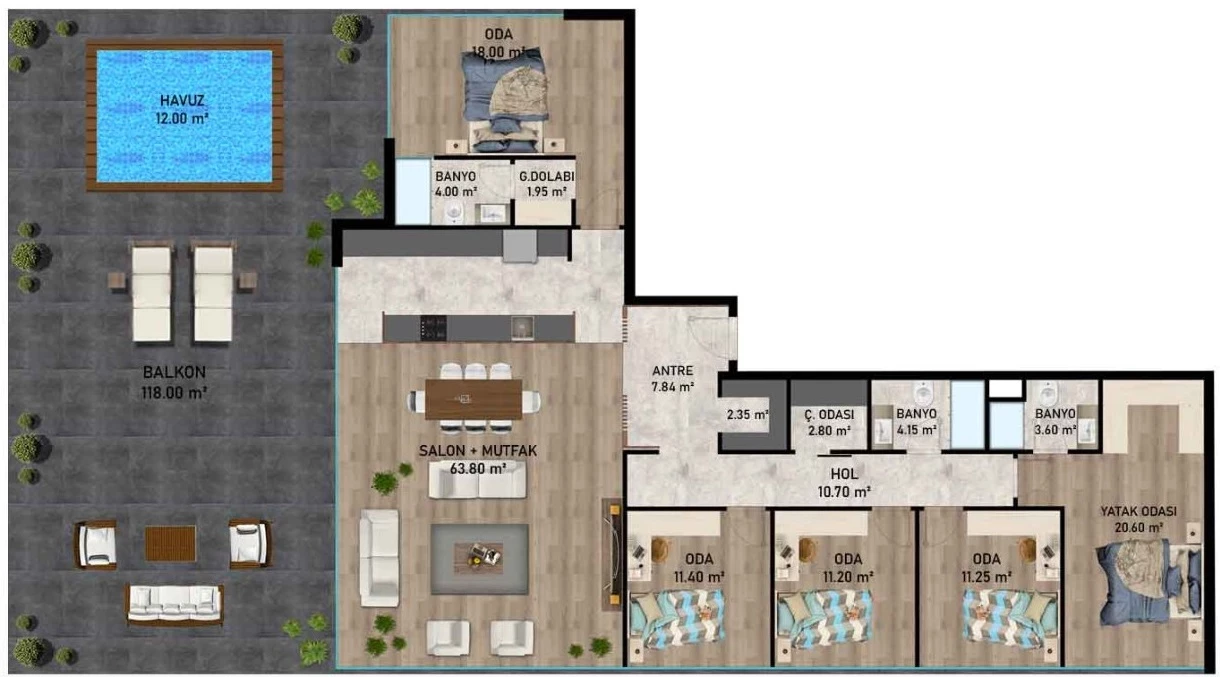 қаласында сатылатын пәтер Ақсу. Ауданы, м: 314, нөмірлер: 5+1, бағасы: 1 500 000 евро. (ID 383)