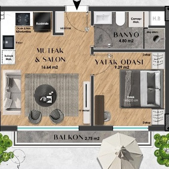 Siemens кіріктірілген жиынтығы 5, 2+1 пәтерлердегі киім-кешек және киім-кешек бөлмесі, Жылыту жүйесі Аралас қазандық және VRF жүйесі, Жылу және дыбыс оқшаулау, Жабық тұрақ (электрлік көлікті зарядтау станциясы), Ашық бассейн (500 м2), балалар бассейні, Бассейн, Фитнес орталығы, сауна, бу бөлмесі, Баскетбол алаңы, Балалар ойын алаңы, тақтайшалар, 7/24 күзет және бейне домофон жүйесі