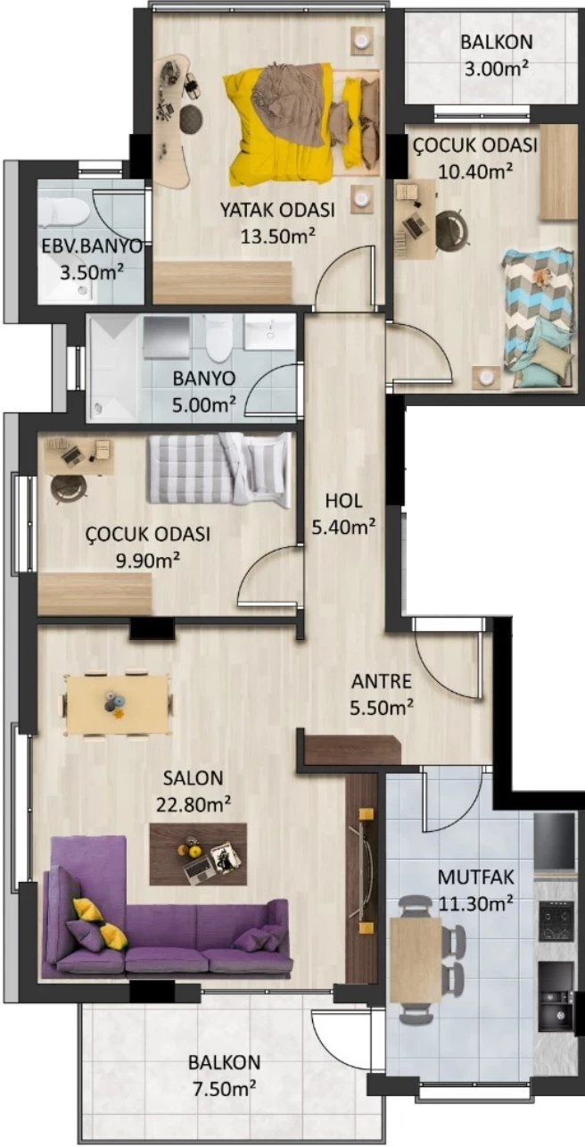 қаласында сатылатын пәтер Кепез. Ауданы, м: 130, нөмірлер: 3+1, бағасы: 185 000 евро. (ID 405)