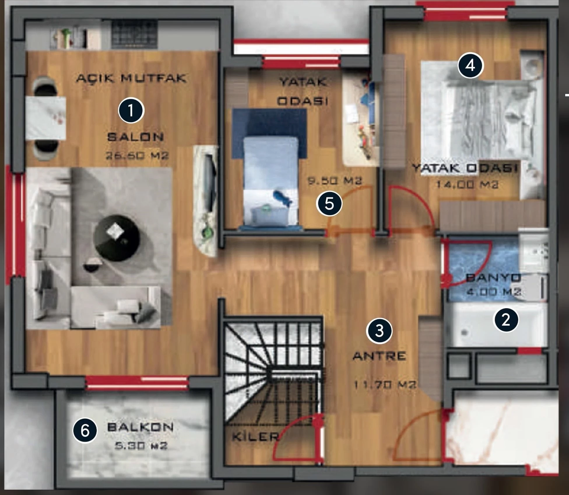 қаласында сатылатын пәтер Коньяалттар. Ауданы, м: 180, нөмірлер: 3+1 duplex, бағасы: 540 000 евро. (ID 35)