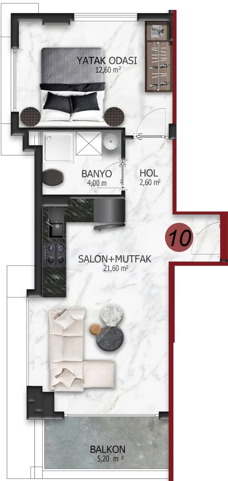қаласында сатылатын пәтер Аланья. Ауданы, м: 46, нөмірлер: 1+1, бағасы: 169 000 евро. (ID 460)