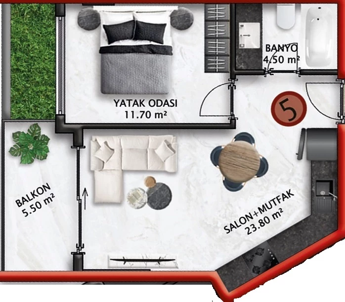 қаласында сатылатын пәтер Аланья. Ауданы, м: 46, нөмірлер: 1+1, бағасы: 173 000 евро. (ID 462)