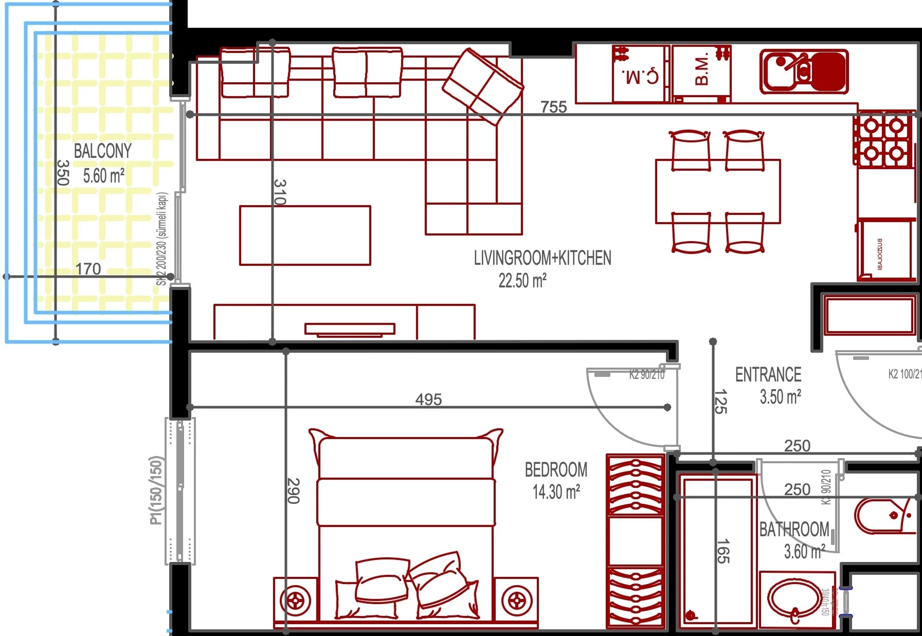 Продается квартира в Аланья. Площадь,м: 56, комнат: 1+1, цена: 169 000 евро. (ID 480)
