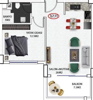 Продается квартира в Аланья. Площадь,м: 51, комнат: 1+1, цена: 170 000 евро. (ID 483)