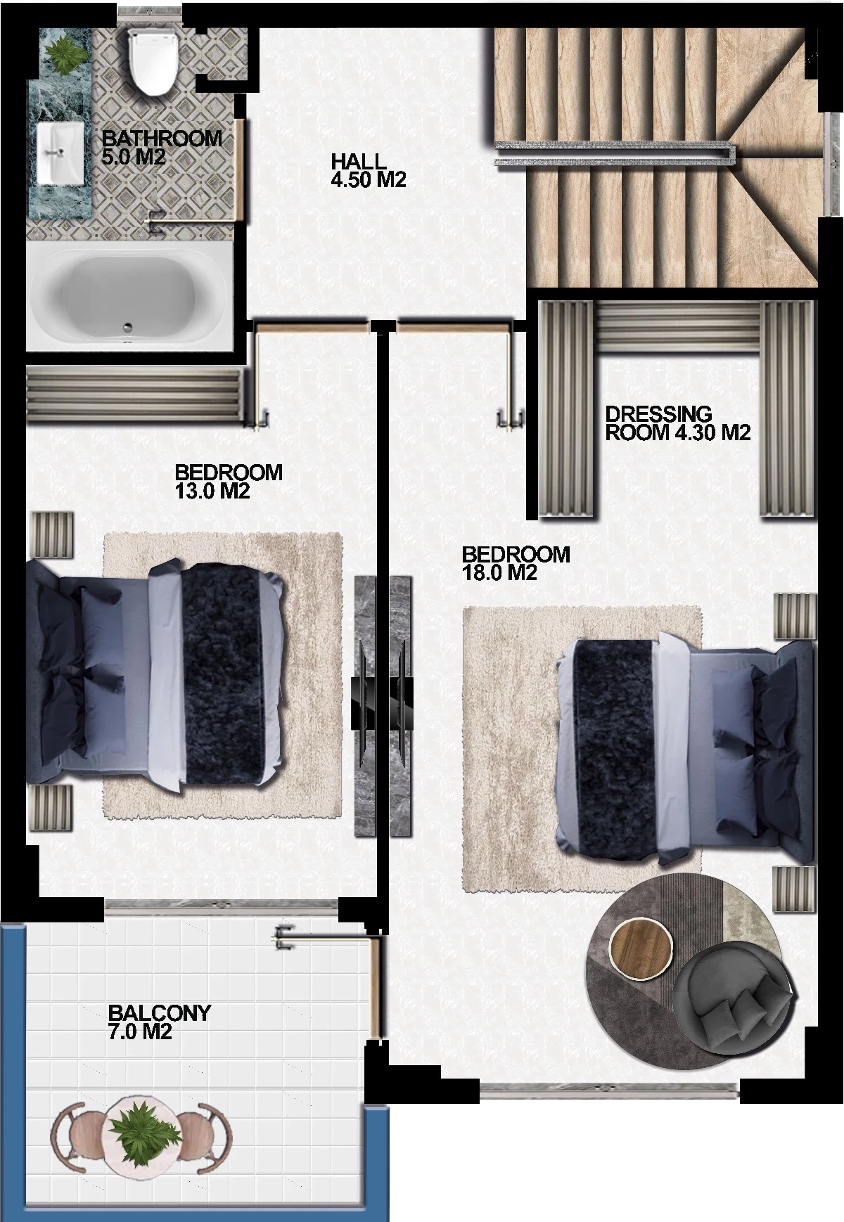 Комнат: спальни (4)
