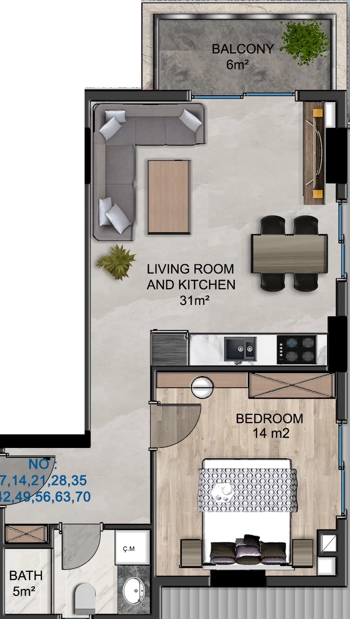 Продается квартира в Аланья. Площадь,м: 67, комнат: 1+1, цена: 142 500 евро. (ID 532)