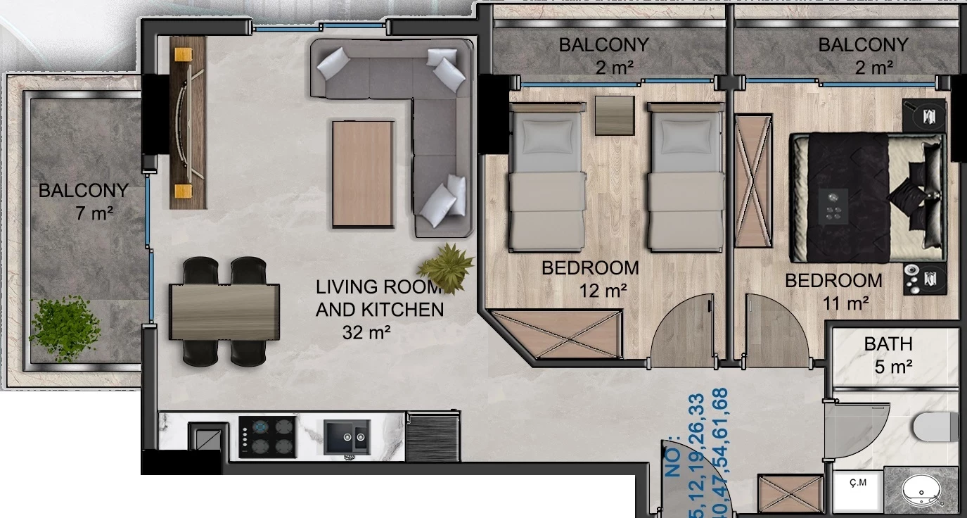 Продается квартира в Муратпаша. Площадь,м: 73, комна...