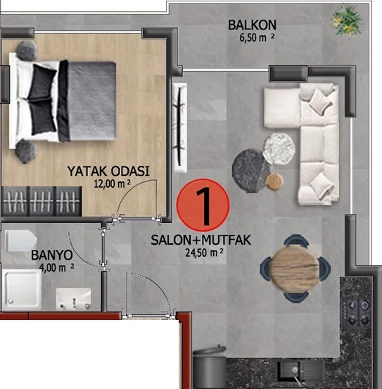 Продается квартира в Аланья. Площадь,м: 47, комнат: 1+1, цена: 173 000 евро. (ID 545)