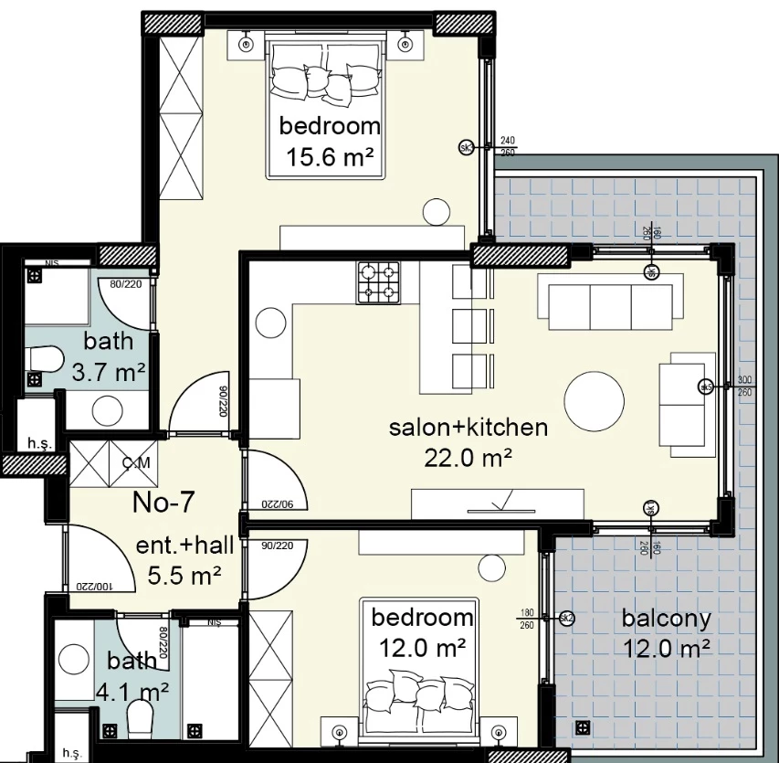 Продается квартира в Аланья. Площадь,м: 95, комнат: 2+1, цена: 310 000 евро. (ID 559)