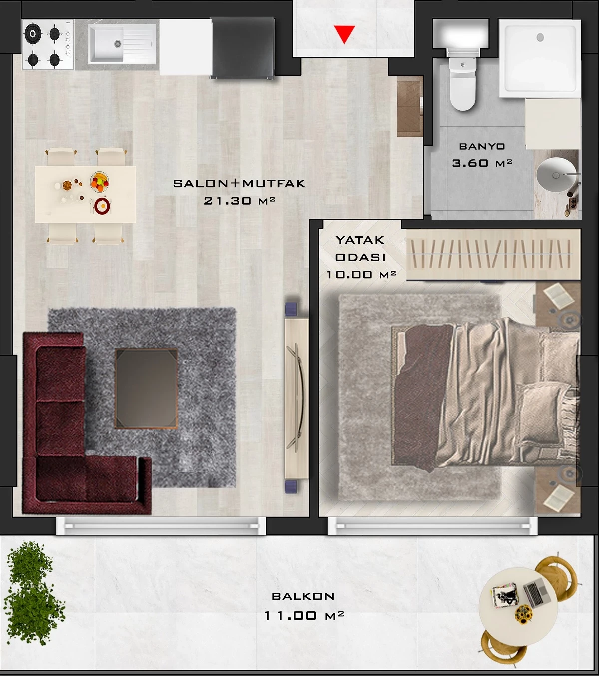 Продается квартира в Аланья. Площадь,м: 57, комнат: 1+1, цена: 155 000 евро. (ID 563)