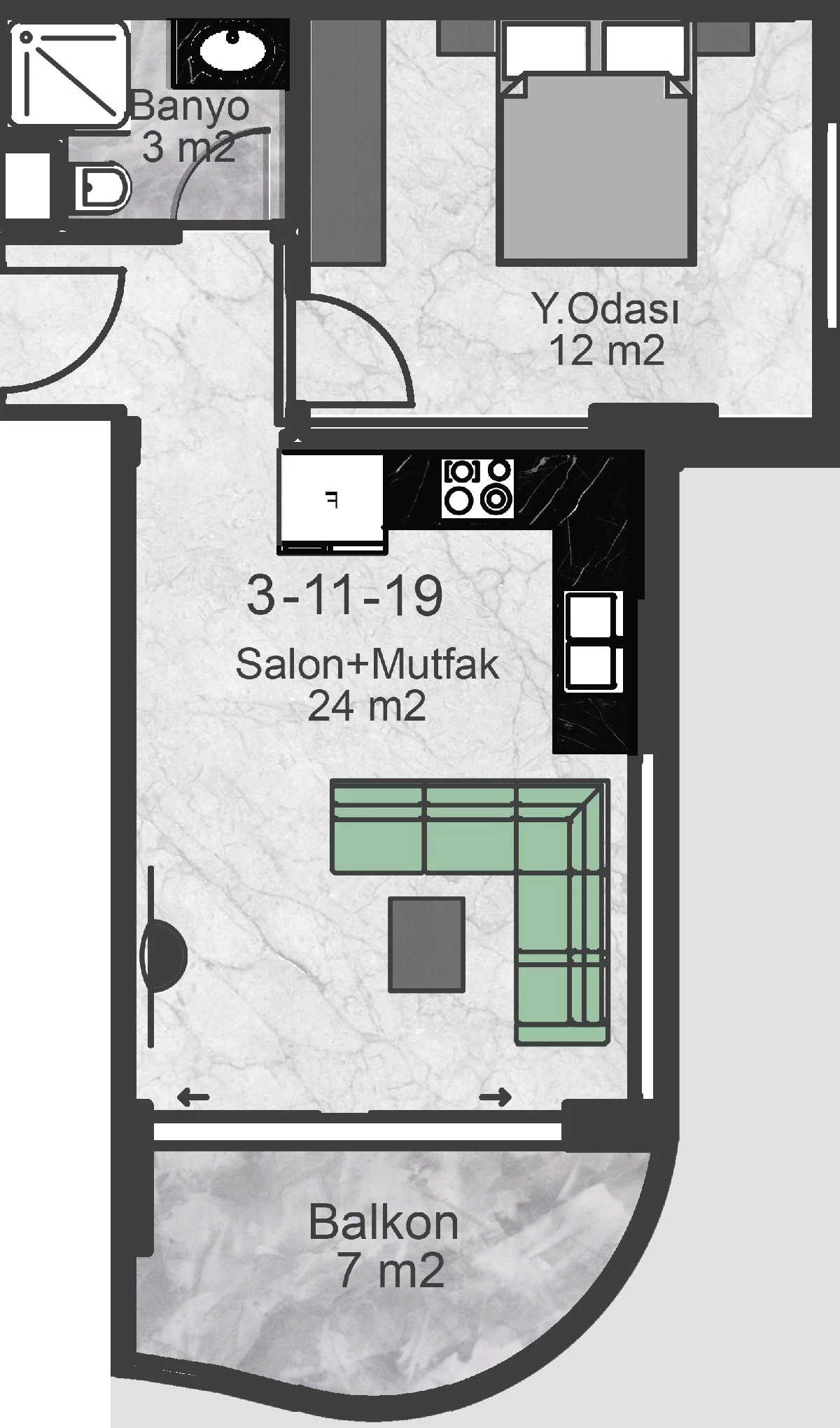 Продается квартира в Аланья. Площадь,м: 55, комнат: 1+1, цена: 155 000 евро. (ID 565)