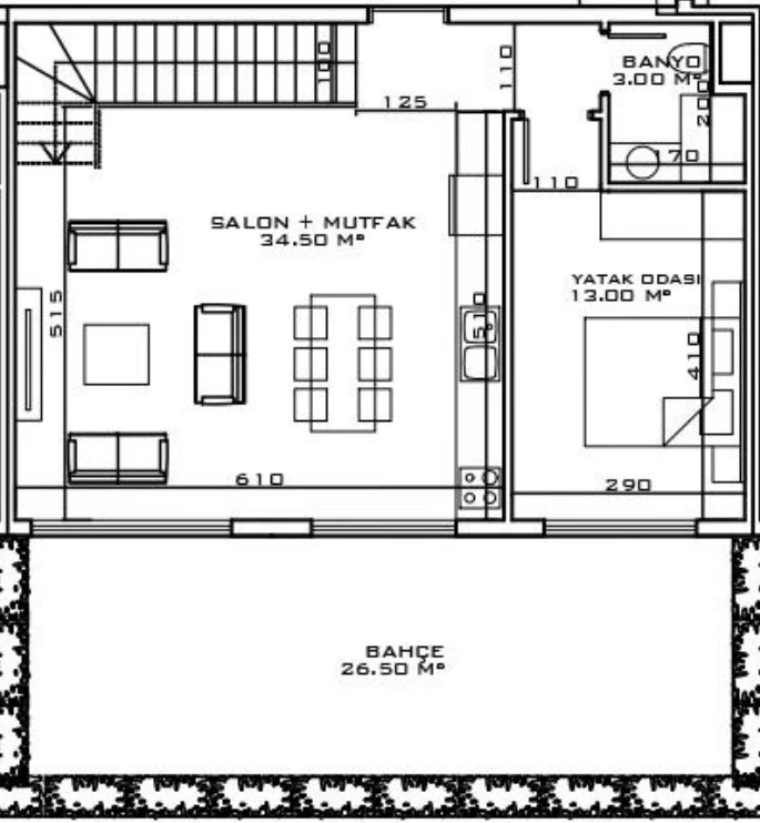 2 + 1 МЕБЛИРОВАННЫЙ САДОВЫЙ ЭТАЖ С ПРИРОДНЫМ ГАЗОМ Н...