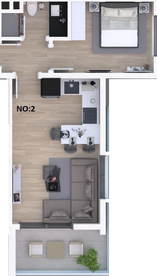 Продается квартира в Газипаша. Площадь,м: 50, комнат: 1+1, цена: 105 000 евро. (ID 577)