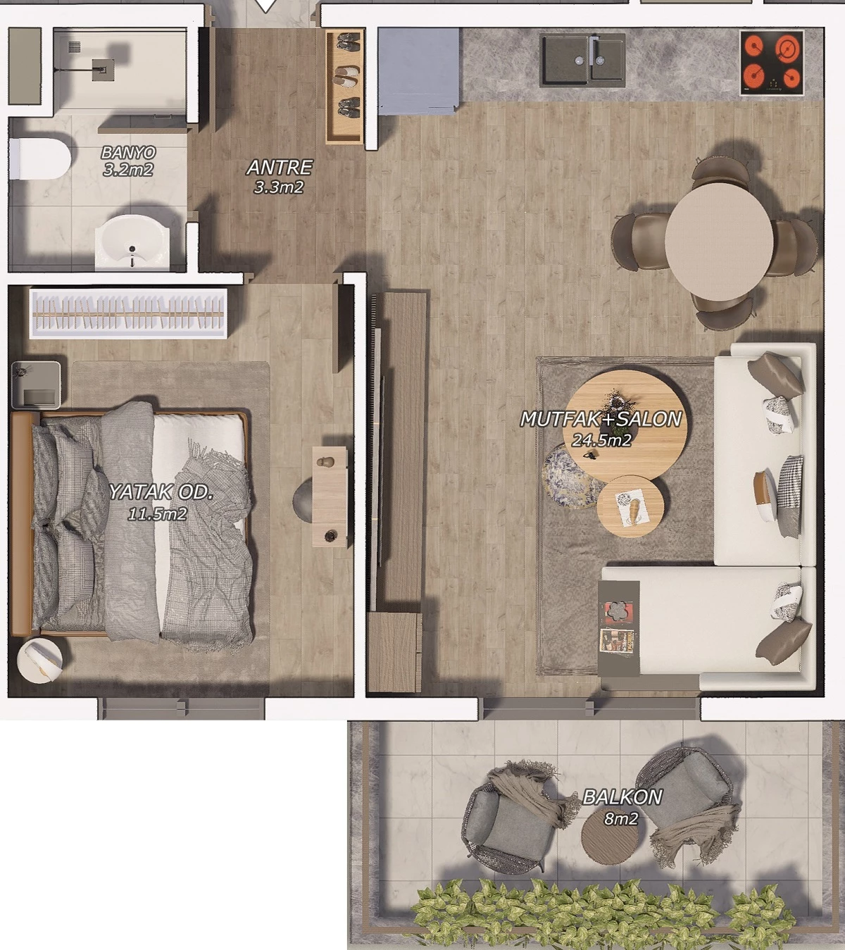 Продается квартира в Газипаша. Площадь,м: 57, комнат: 1+1, цена: 105 000 евро. (ID 578)