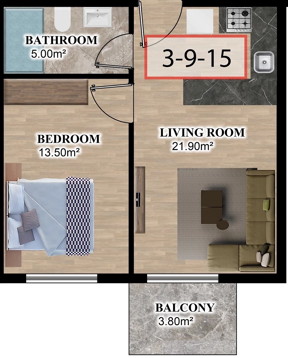 Продается квартира в Аланья. Площадь,м: 55, комнат: 1+1, цена: 103 000 евро. (ID 583)