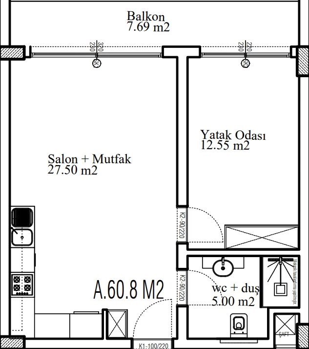 Продается квартира в Анталия. Площадь,м: 61, комнат: 1+1, цена: 94 000 евро. (ID 741)