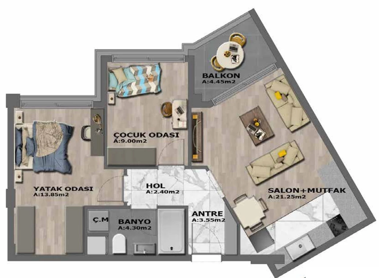 Продается квартира в Коньяалты. Площадь,м: 88, комна...