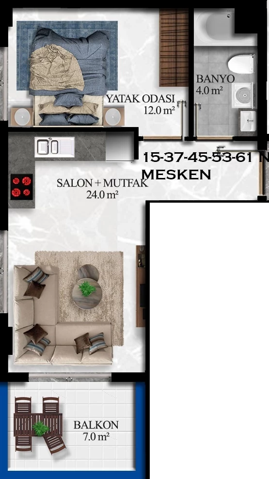 Продается квартира в Аланья. Площадь,м: 55, комнат: 1+1, цена: 132 725 евро. (ID 446)