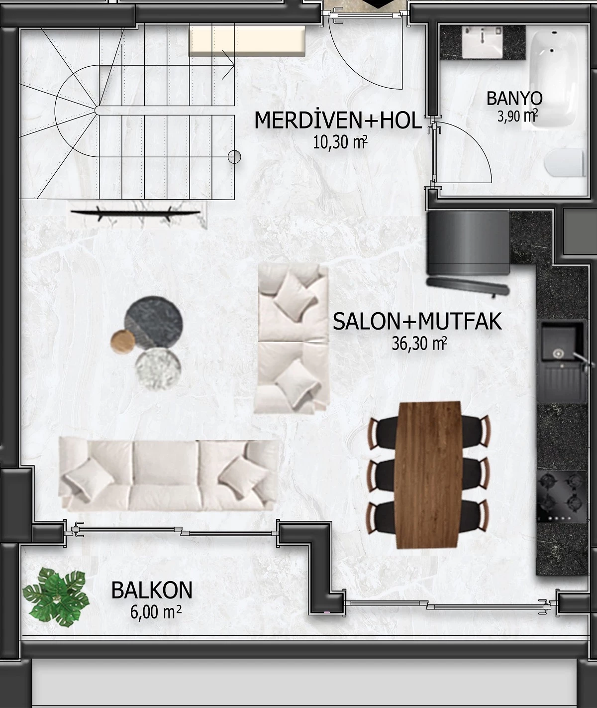 В РАЙОНЕ АЛТЫНТАШ НА УЧАСТКЕ ТК 77 2+1 3. ЭТАЖ ДЛЯ П...