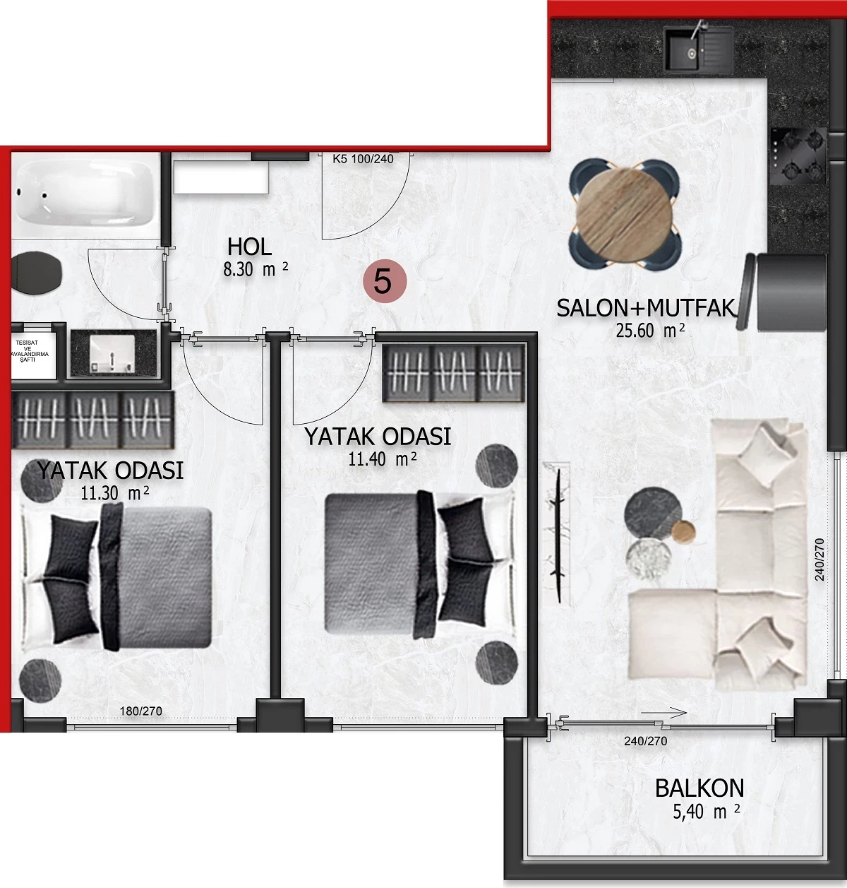 Продается квартира в Аланья. Площадь,м: 72, комнат: 2+1, цена: 217 000 евро. (ID 461)