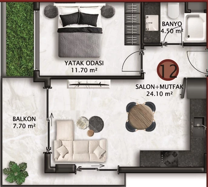 Продается квартира в Аланья. Площадь,м: 48, комнат: 1+1, цена: 183 000 евро. (ID 462)