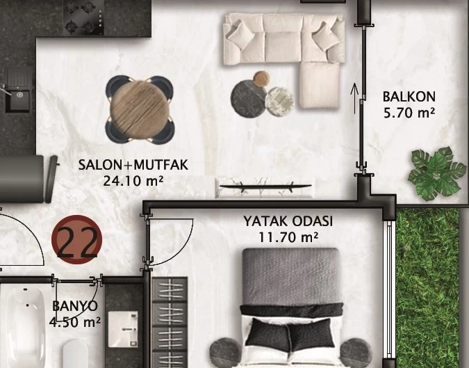 Продается квартира в Аланья. Площадь,м: 46, комнат: 1+1, цена: 188 000 евро. (ID 462)