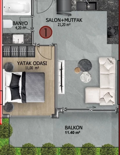 Продается квартира в Муратпаша. Площадь,м: 43, комна...