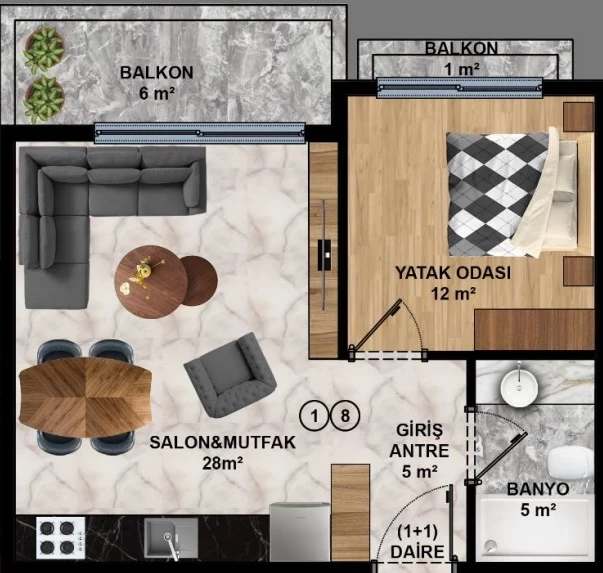 Göksu Mah 24/7 Полностью меблирован