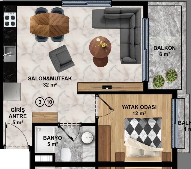 ОДНОКОМНАТНАЯ КВАРТИРА НА ЭТАЖЕ В ВАРСАК ФЕВЗИЧАКМАК...