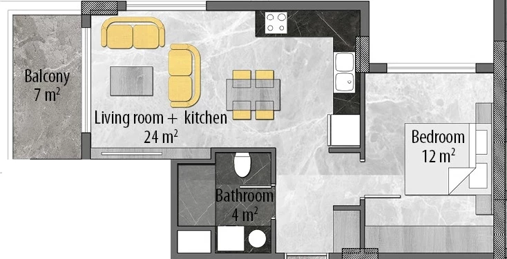 Продається квартира в Аланья. Площа, м: 48, кімнат: 1+1, ціна: 164 000 євро. (ID 469)