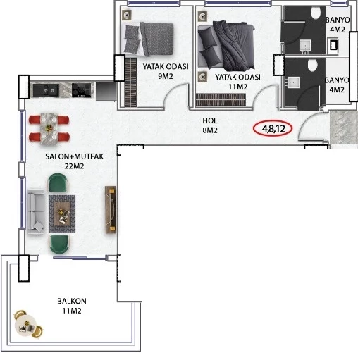 Продається квартира в Аланья. Площа, м: 76, кімнат: 2+1, ціна: 178 000 євро. (ID 482)