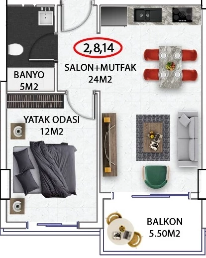 Продається квартира в Аланья. Площа, м: 47, кімнат: 1+1, ціна: 147 000 євро. (ID 487)