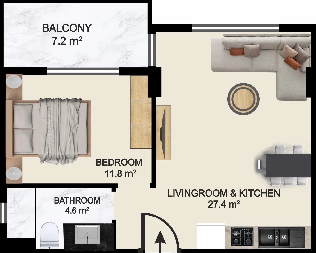 Продається квартира в Аланья. Площа, м: 71, кімнат: 1+1, ціна: 255 000 євро. (ID 493)