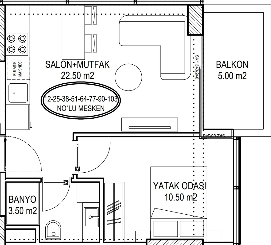 Продається квартира в Аланья. Площа, м: 51, кімнат: 1+1, ціна: 127 780 євро. (ID 503)