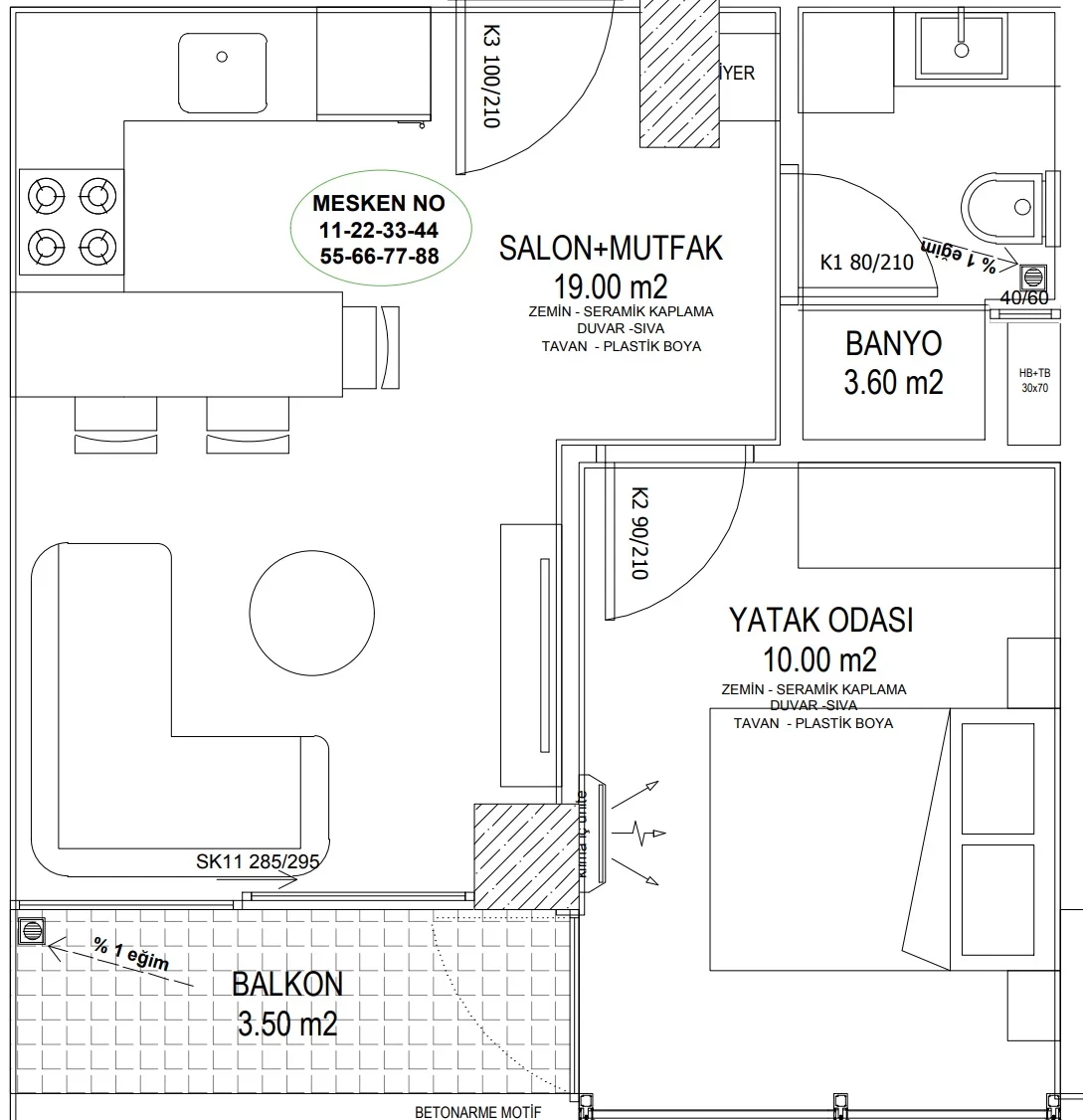 Продається квартира в Аланья. Площа, м: 50, кімнат: 1+1, ціна: 119 240 євро. (ID 503)