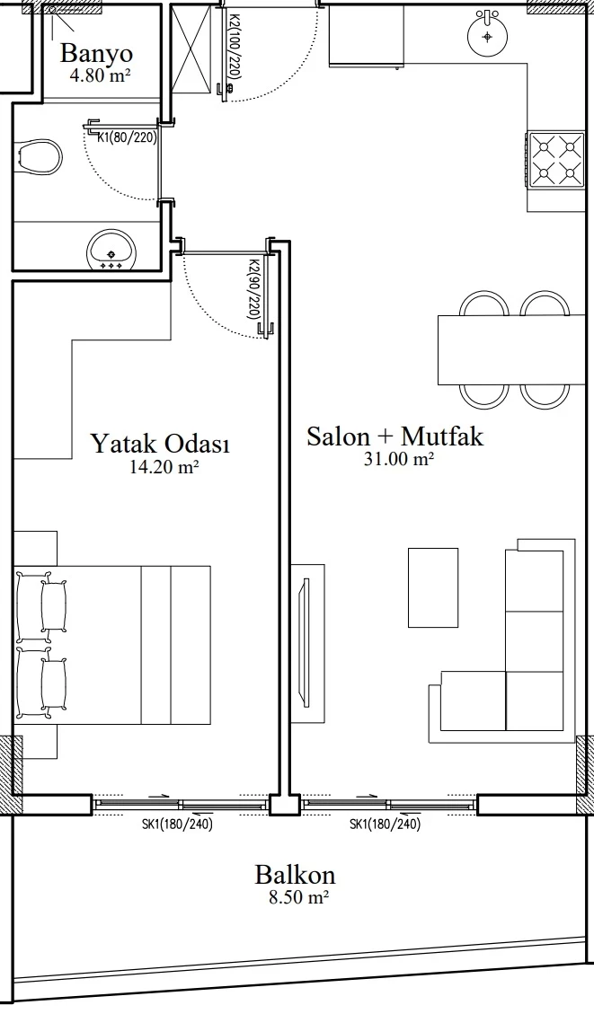 Продається квартира в Аланья. Площа, м: 68, кімнат: 1+1, ціна: 189 500 євро. (ID 504)