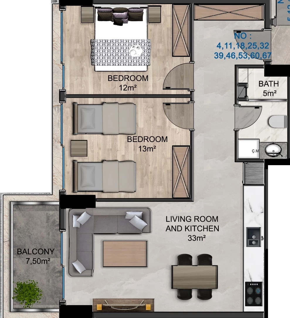 Продається квартира в Аланья. Площа, м: 80, кімнат: 2+1, ціна: 167 500 євро. (ID 532)