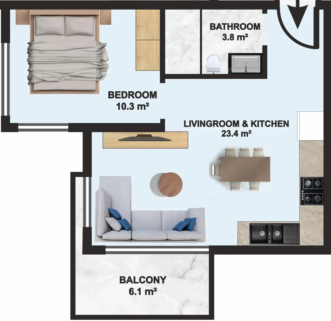 Продається квартира в Аланья. Площа, м: 59, кімнат: 1+1, ціна: 290 000 євро. (ID 535)