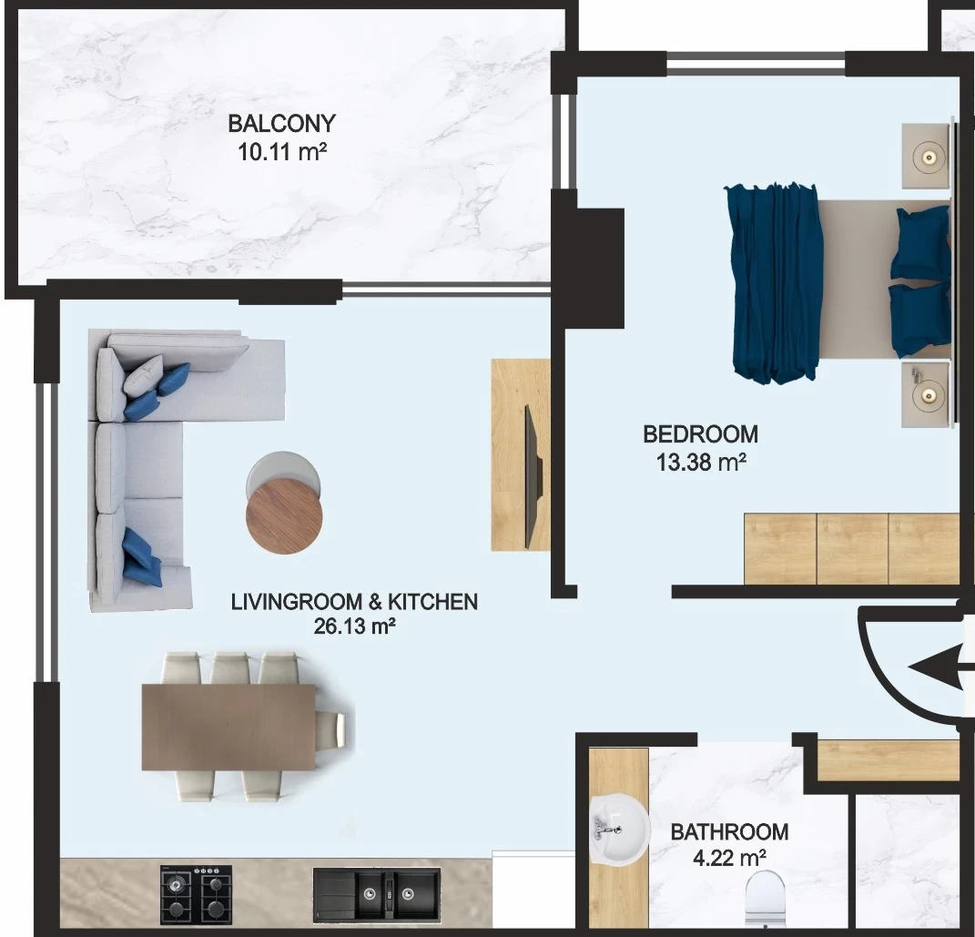 Продається квартира в Аланья. Площа, м: 65, кімнат: 1+1, ціна: 305 000 євро. (ID 538)