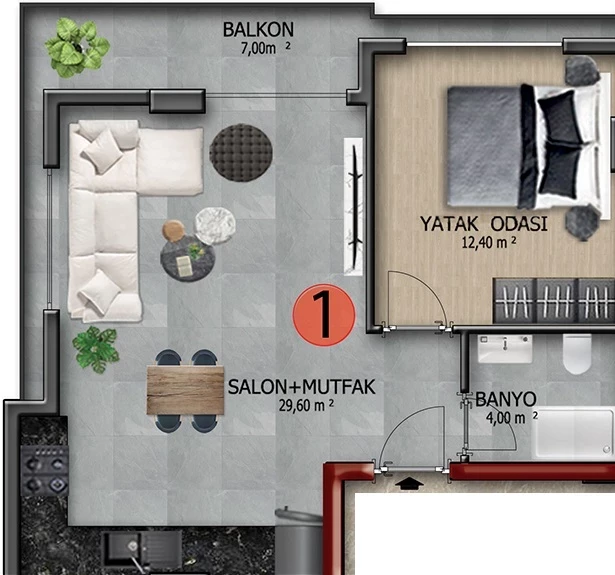 Продається квартира в Аланья. Площа, м: 53, кімнат: 1+1, ціна: 194 000 євро. (ID 545)