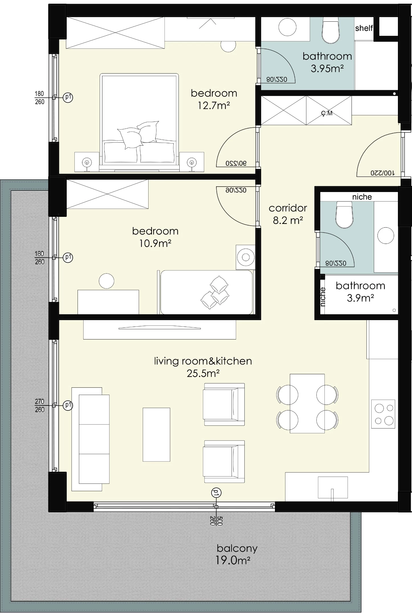 Продається квартира в Кепез. Площа, м: 79, кімнат: 1...
